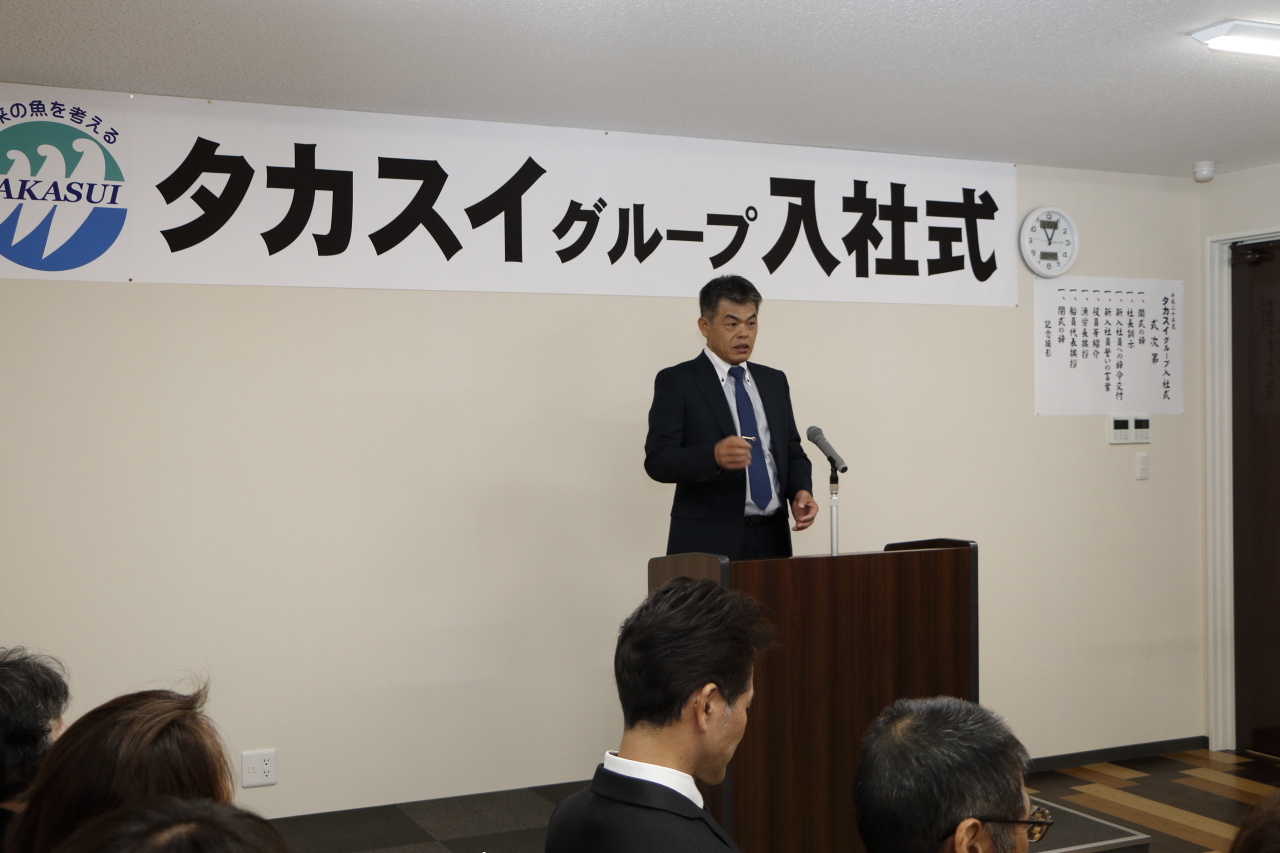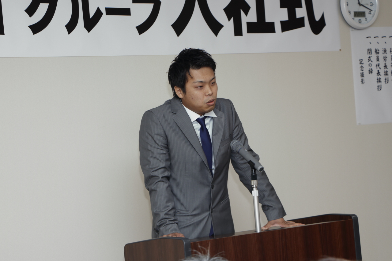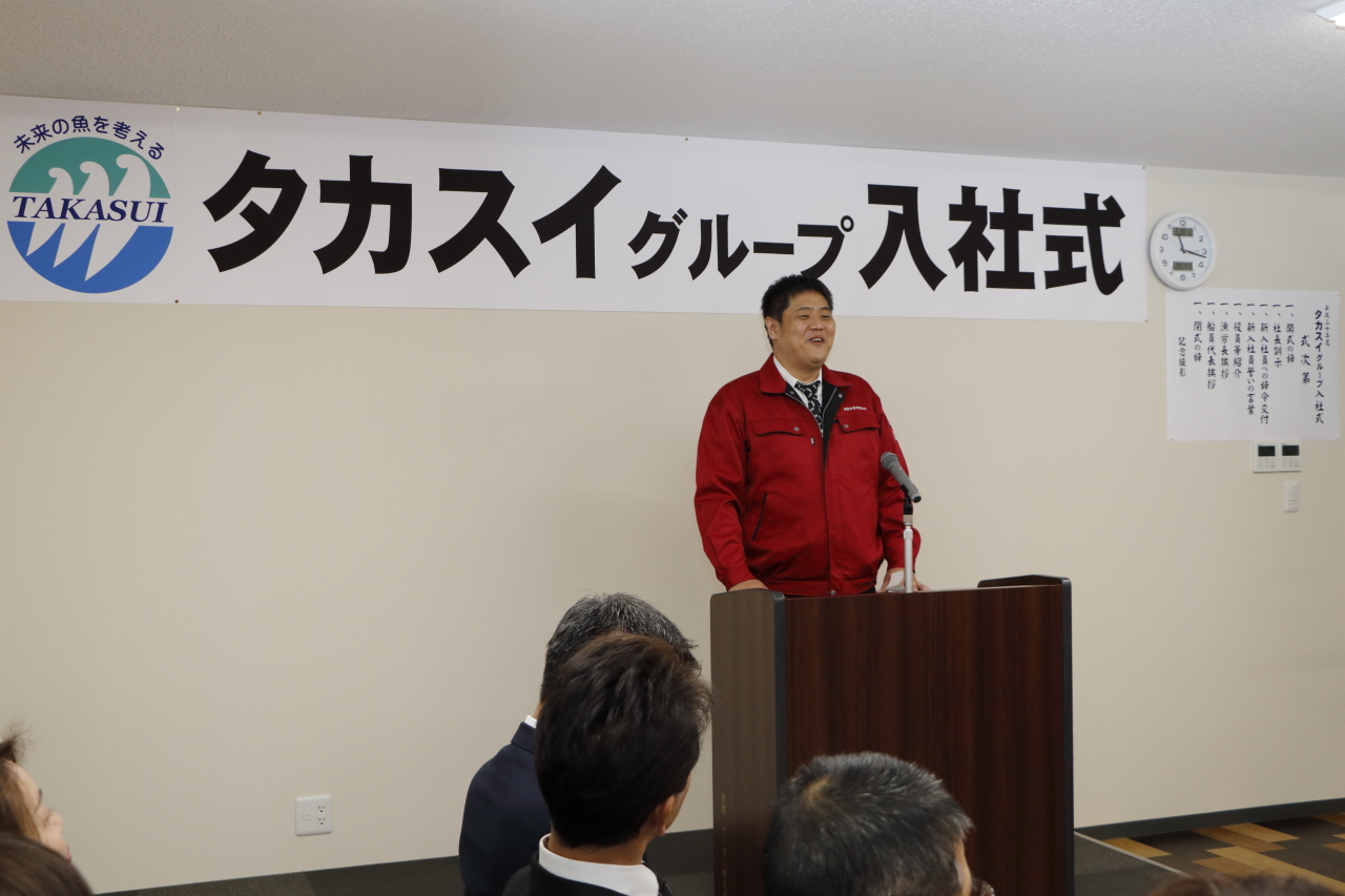 平成30年度タカスイグループ入社式をタカスイ延岡本社講堂にて執り行いました。 本年度は、株式会社 桑原水産 漁業部に1名、宮崎県立海洋高等学校を卒業されて入社されました。 髙須義隆 桑原水産代表取締役社長より辞令を受け、力強く誓いの言葉を述べて頂きました。 第56金比羅丸船団 森漁労長と タカスイ・桑原水産取締役・第46金比羅丸船長 髙須隆太郎 船団船員代表が挨拶を行い、終始和やかなムードで式は進み、皆で豊漁・航海、操業安全を誓いました。 ケガなどをせず、立派な海の男になってくださいね!